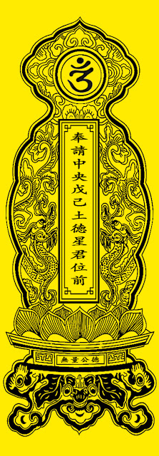 Bài vị photo trên giấy màu vàng, hoặc viết trên giấy màu vàng 8 chữ: Trung Ương Mậu Kỷ Thổ Đức Tinh Quân (中央戊己土德星君).