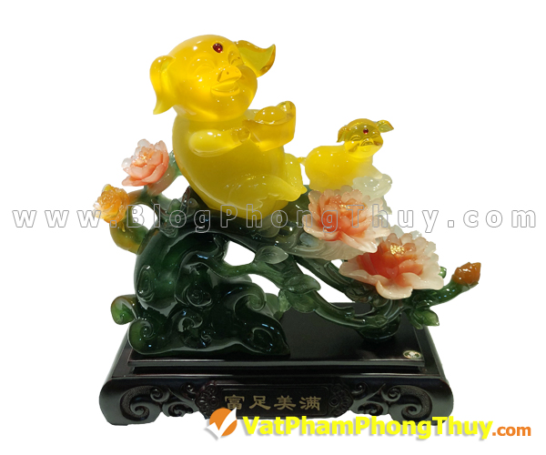 Tiên heo vàng ngọc ngồi trên nhánh mẫu đơn cam – Phú Túc Mỹ Mãn * Mã số LN007 * Giá bán: 4,830,000