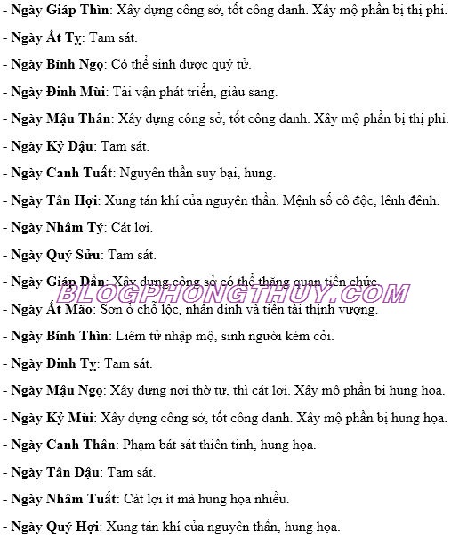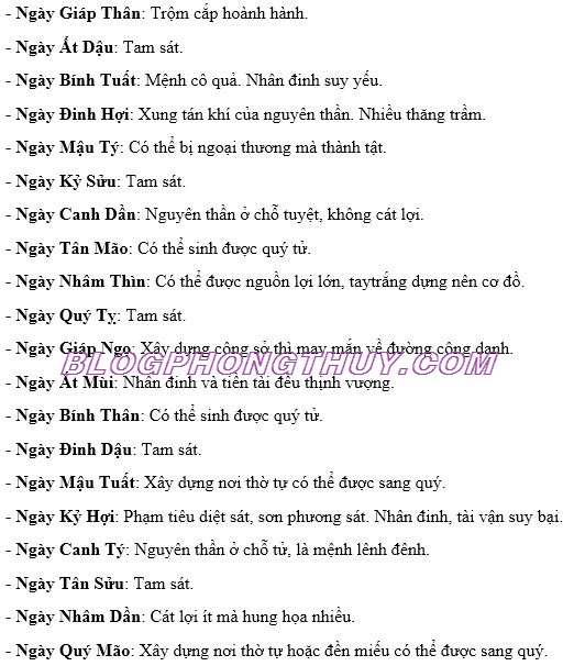 Sau đây là ý nghĩa tốt, xấu, của 60 ngày, từ ngày Giáp Tý đến ngày Quý Hợi theo bí quyết của phong thủy học, trong việc tiến hành xây dựng, tu tạo nhà cửa, công ty, cửa hàng, đình chùa, miếu phủ, nhà thờ gia tộc v.v…thuộc SƠN ẤT – HƯỚNG TÂN: