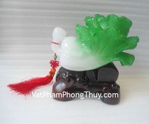 + Chất liệu và hoàn thiện: Tượng bắp cải xanh gối đồng tiền nhỏ, trên đế gỗ bột đá màu (tại Việt Nam)