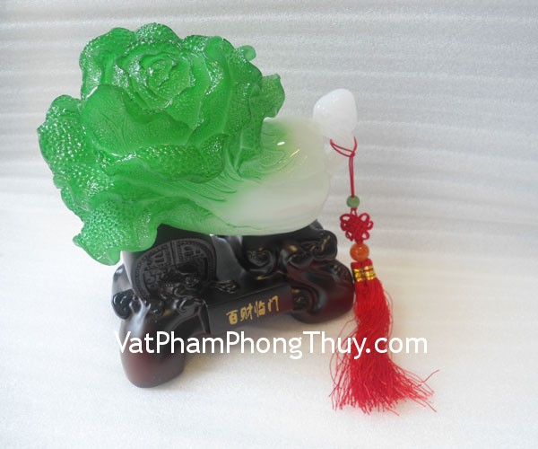 + Ý nghĩa: Bắp cải xanh gối đồng tiền gỗ nhỏ – bách tài lâm môn – Là túi càn khôn chứa đựng của cải khổng lồ. Biểu tượng cho tài lộc dồi dào, kinh doanh phát đạt, mang lại thịnh vượng cho gia chủ.