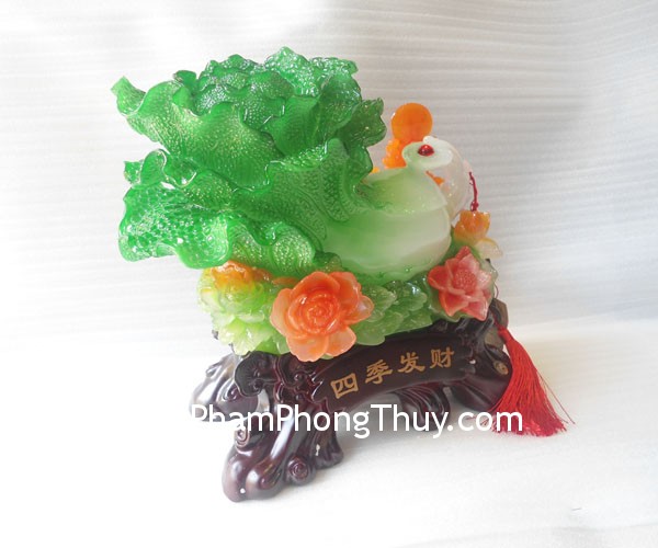 + Ý nghĩa: Bắp cải xanh trên bụi mẫu đơn nhiều màu – tứ quý phát tài– Là túi càn khôn chứa đựng của cải khổng lồ. Biểu tượng cho tài lộc dồi dào, kinh doanh phát đạt, mang lại thịnh vượng cho gia chủ. Ngoài ra bổ trợ về tình cảm, hạnh phúc gia đình.