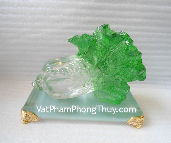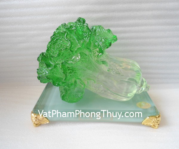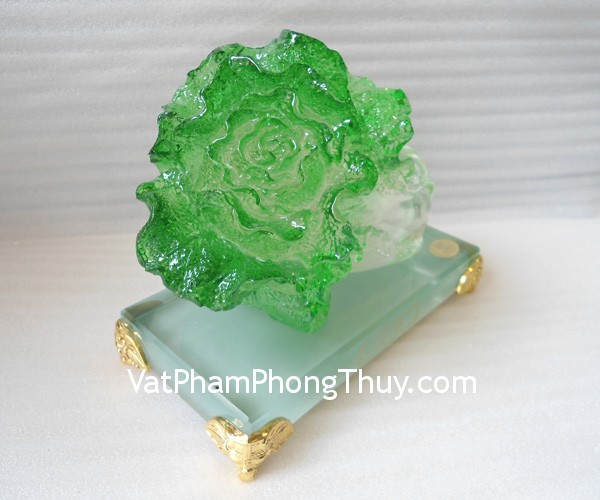 + Chất liệu và hoàn thiện: Tượng bắp cải lưu ly trên đế thủy tinh (tại Việt Nam)