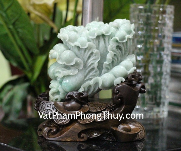 + Chất liệu và hoàn thiện: Tượng bắp cải ngọc Phỉ Thúy trên đế cây đỗ quyên độc đáo (tại Việt Nam).