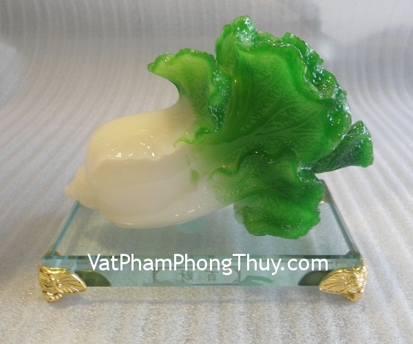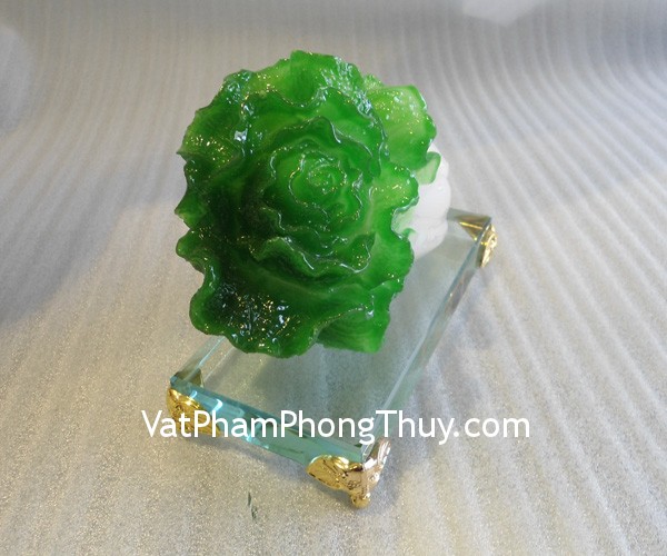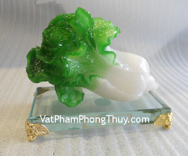 + Chất liệu và hoàn thiện: Tượng bắp cải xanh bột đá màu, đế thủy tinh (tại Việt Nam).