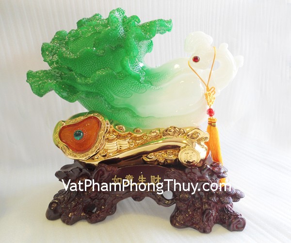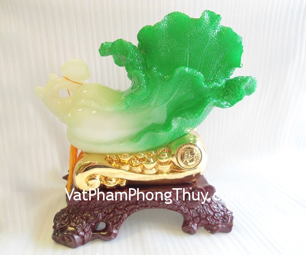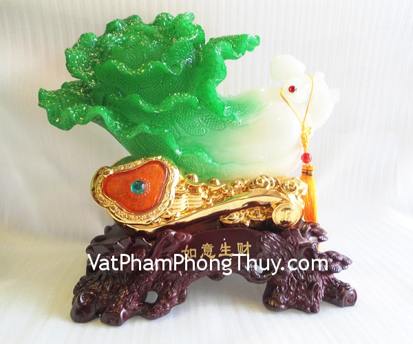 + Chất liệu và hoàn thiện: Tượng bắp cải xanh trên như ý vàng, trên đế gỗ bột đá màu (tại Việt Nam)