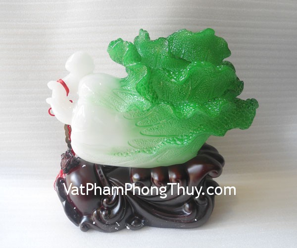 + Ý nghĩa:Bắp cải xanh trên đế gỗ + xâu tiền xu – bách tài tụ lai– Là túi càn khôn chứa đựng của cải khổng lồ. Biểu tượng cho tài lộc dồi dào, kinh doanh phát đạt, mang lại thịnh vượng cho gia chủ.