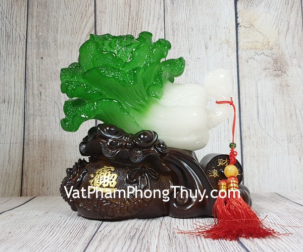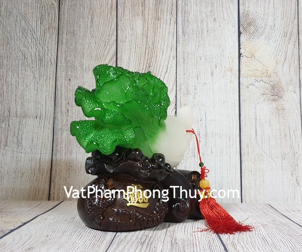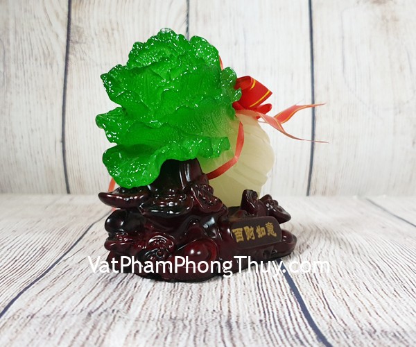 + Ý nghĩa: Chiêu Tài Tấn Bảo/ Tài Nguyên Cuồn Cuộn – theo cách đọc chữ Hán, bắp cải được đọc là “bạch thái”, dịch ra sẽ hài âm với từ “bách tài”, có nghĩa là tài lộc và may mắn rất dồi dào, kết hợp với bao tải vàng, vật phẩm phong thủy trưng bày trong nhà, cửa hàng kinh doanh để gia chủ cầu được may mắn, tài lộc như ý muốn.