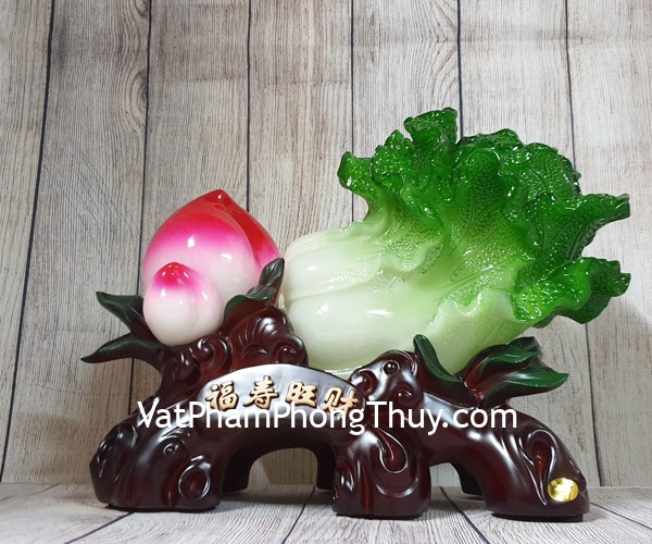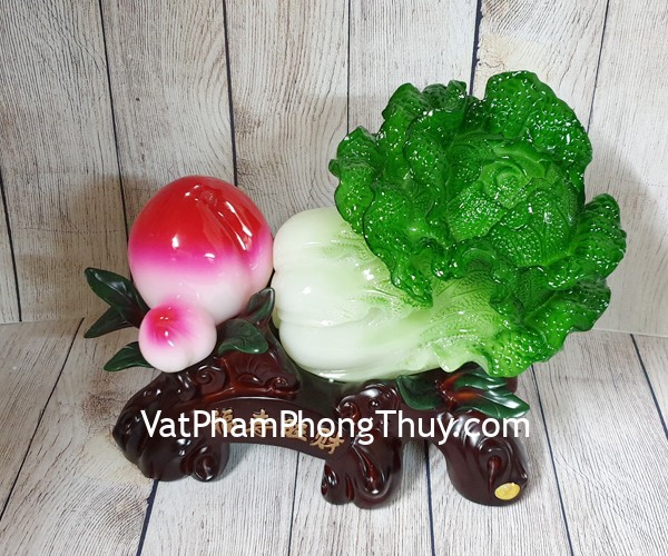+ Chất liệu và hoàn thiện: Tượng bắp cải xanh lớn bên đào tiên đỏ đế gỗ , bột đá màu (tại Việt Nam)