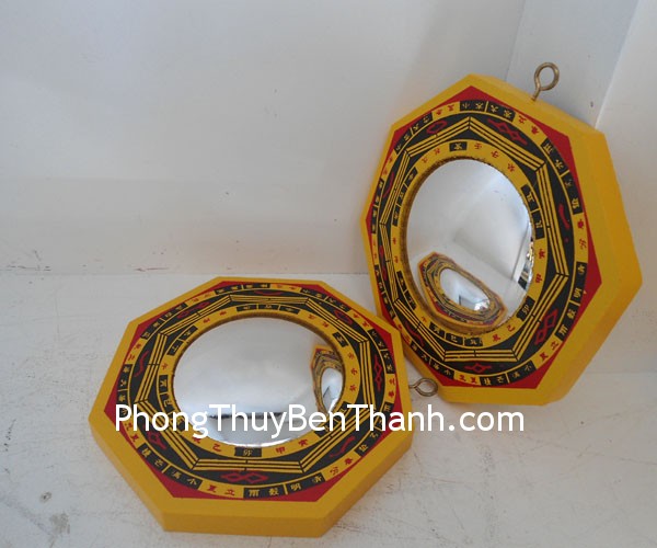 + Chất liệu và hoàn thiện: Bát quái gỗ thông gương cầu lồi (tại Việt Nam).