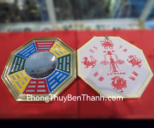 + Chất liệu và hoàn thiện: Bát quái bọc nhôm lõm (tại Việt Nam). + Kích thước (đường kính): 16cm + Khối lượng: 234g + Ý nghĩa: thu hút năng lượng tốt, hóa giải sát khí. + Cách sử dụng: treo trước nhà.