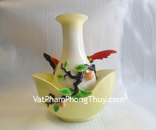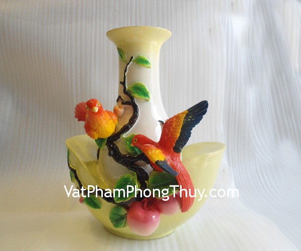 + Chất liệu và hoàn thiện: Tượng bình chim hỷ tước (chim khách) bột đá màu (tại Việt Nam).