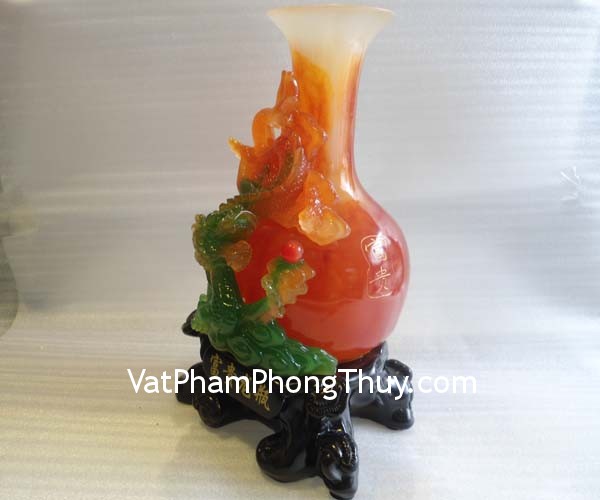 + Chất liệu và hoàn thiện: Bình rồng màu đỏ bột đá màu (tại Việt Nam).