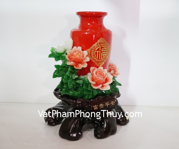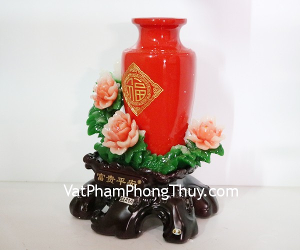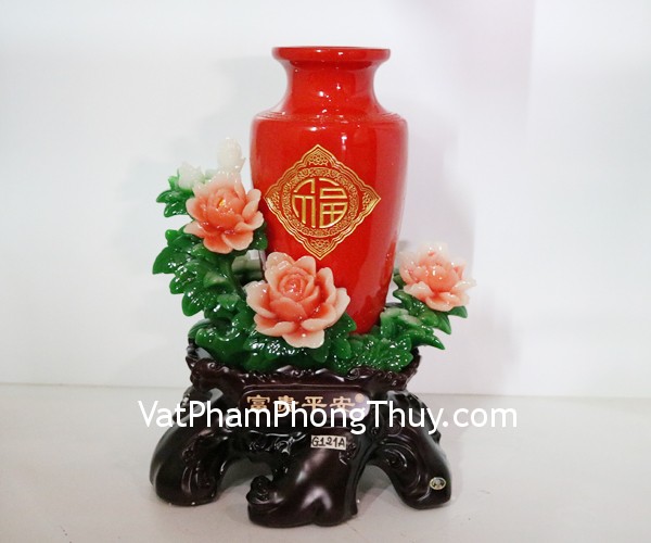 + Chất liệu và hoàn thiện: Tượng bình hoa mẫu đơn màu đỏ, bình lớn, có đế gỗ, hàng bột đá màu cao cấp (tại Việt Nam).