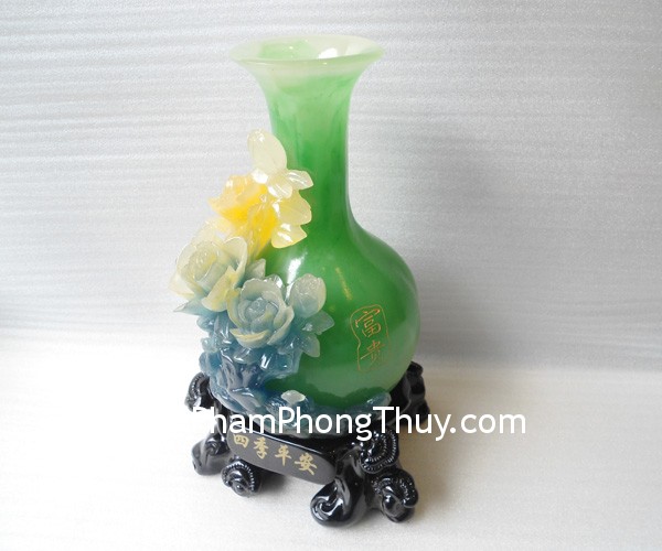+ Chất liệu và hoàn thiện: Bình hoa mẫu đơn xanh nhỏ, bột đá màu (tại Việt Nam).
