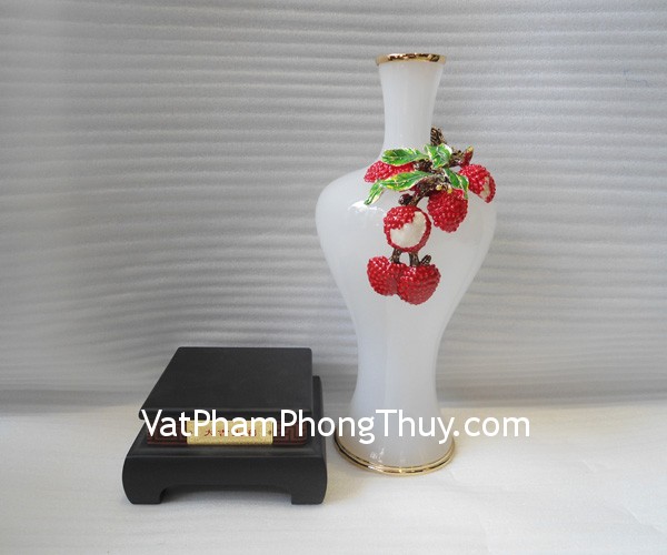 + Chất liệu và hoàn thiện: Bình bạch ngọc chạm khắc trái vải tinh xảo (tại Việt Nam).