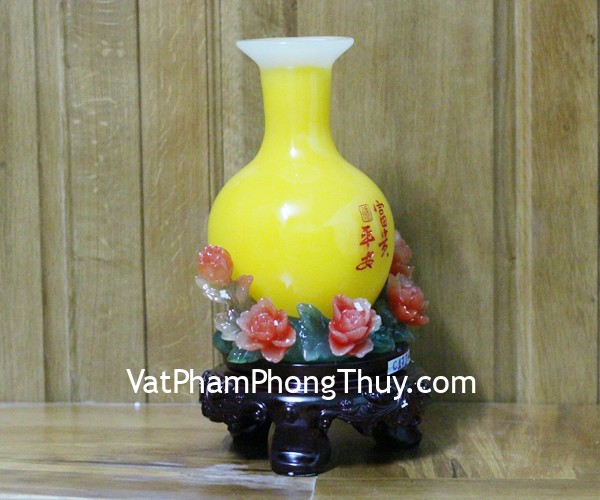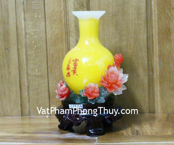 + Chất liệu và hoàn thiện: Bình ngọc vàng hoa mẫu đơn, đế gỗ, bột đá màu cao cấp (tại Việt Nam).
