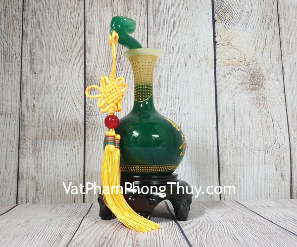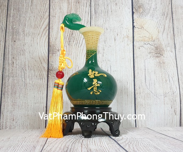 Bình tài lộc xanh ngọc cổ cao có như ý hồng châu LN206