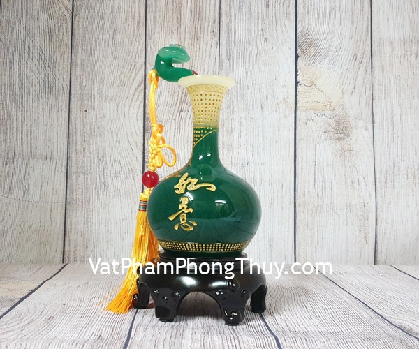 + Chất liệu và hoàn thiện: Bình tài lộc ngọc xanh cổ cao có gậy như ý, bột đá màu cao cấp (tại Việt Nam).