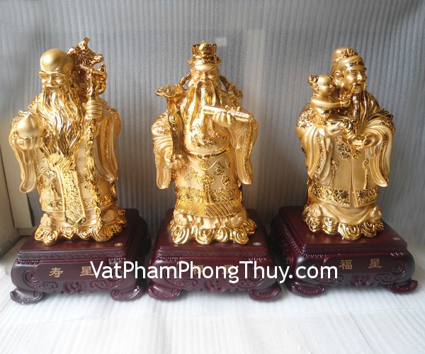 + Chất liệu và hoàn thiện: Bộ tam đa phước lộc thọ mạ vàng (tại Việt Nam)