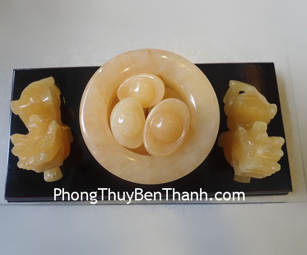 + Chất liệu và hoàn thiện: Bộ tỳ hưu đá ngọc Hoàng Long vàng (Tân Cương, Hồng Kông).