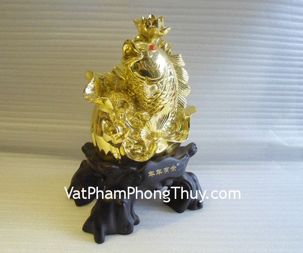 + Chất liệu và hoàn thiện: Tượng cá chép bột đá mạ vàng non (tại Việt Nam).