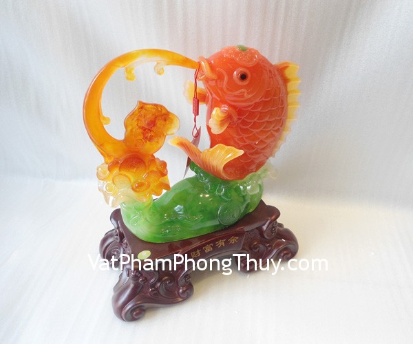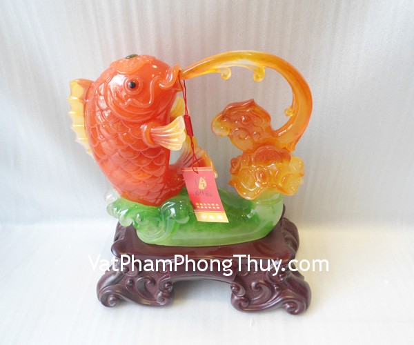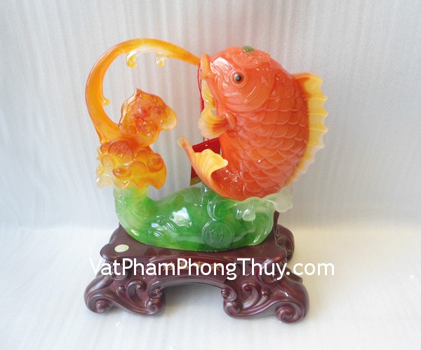 + Chất liệu và hoàn thiện: Tượng cá chép đỏ trên đế gỗ, bột đá màu (tại Việt Nam).