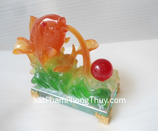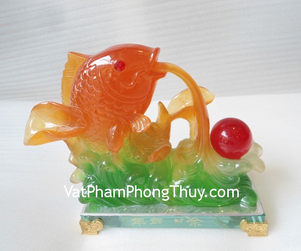+ Chất liệu và hoàn thiện: Tượng cá chép đỏ trên đế thủy tinh, bột đá màu (tại Việt Nam).
