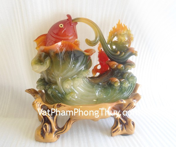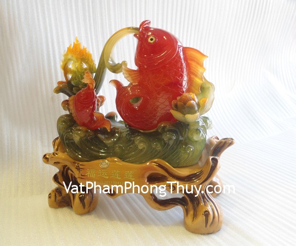 + Chất liệu và hoàn thiện: Tượng cá chép đỏ trên đế gỗ, bột đá màu (tại Việt Nam).