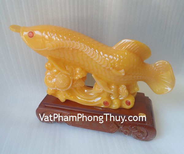 + Chất liệu và hoàn thiện: Cá kim long chiêu tài, bột đá màu (tại Việt Nam).