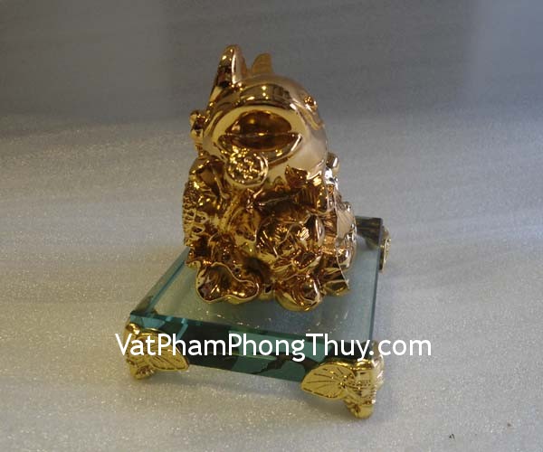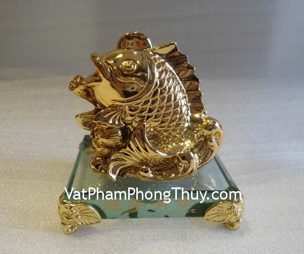 + Chất liệu và hoàn thiện : Tượng cá chép bên hoa sen bằng bột đá mạ vàng non, đế thủy tinh (tại Việt Nam).