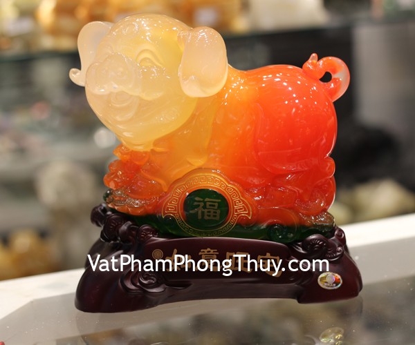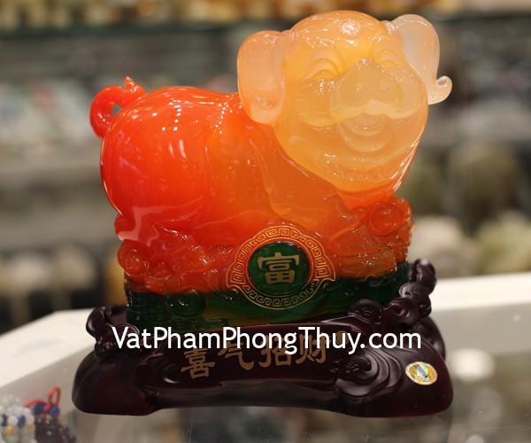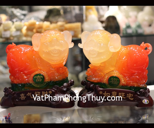 + Chất liệu và hoàn thiện: Cặp heo đỏ trên đế gỗ có châu đỏ, hàng bột đá màu (tại Việt Nam).