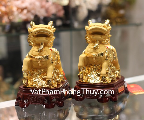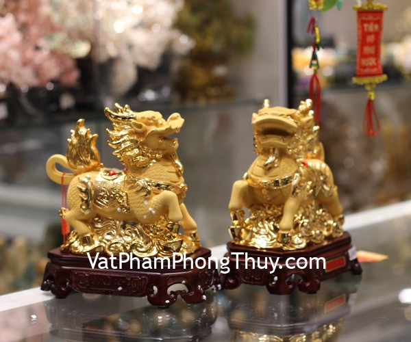+ Chất liệu và hoàn thiện: Cặp kỳ lân vàng trên đế gỗ, hàng bột đá cao cấp (tại Việt Nam)