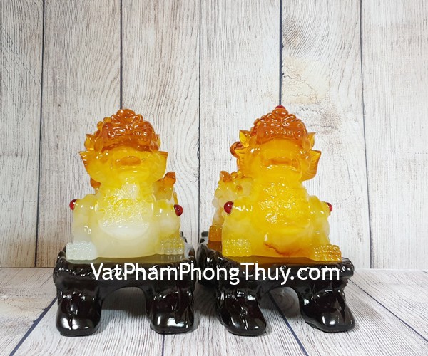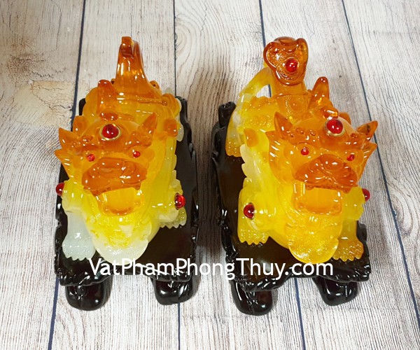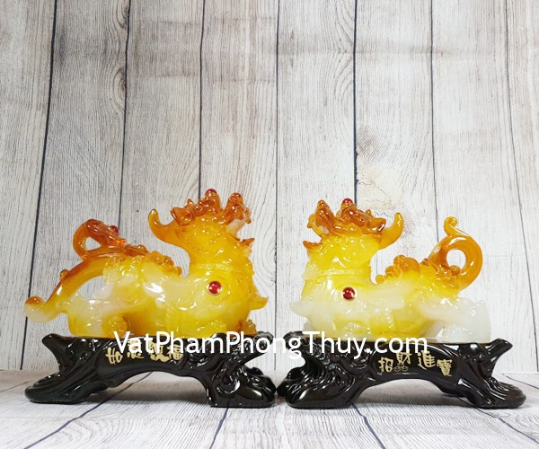 + Chất liệu và hoàn thiện: Cặp tỳ hưu ngọc vàng cam, đuôi hình gậy như ý may mắn trên đế gỗ, bột đá màu cao cấp (tại Việt Nam).