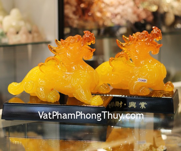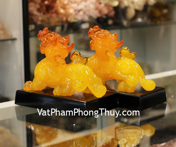 + Chất liệu và hoàn thiện: Cặp Tỳ Hưu lưu ly trên đế gỗ, bột đá cao cấp (tại Việt Nam).