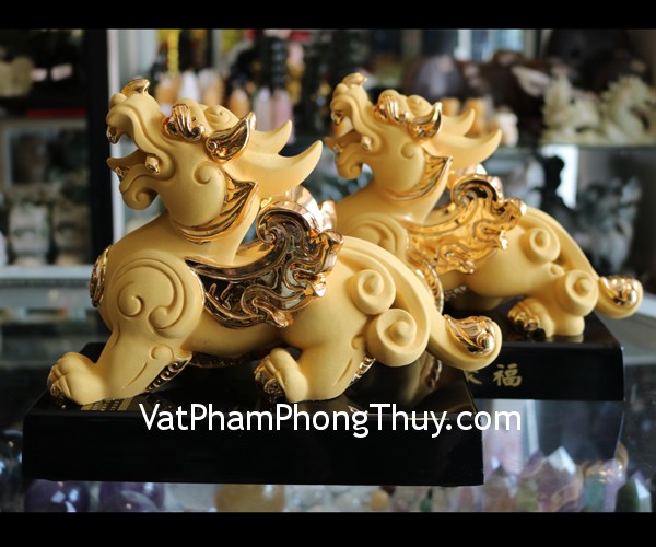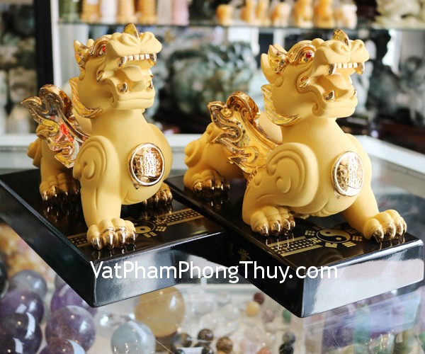 + Chất liệu và hoàn thiện: Cặp tỳ hưu như ý đế bát quái sa kim vàng, hàng bột đá cao cấp (tại Việt Nam).