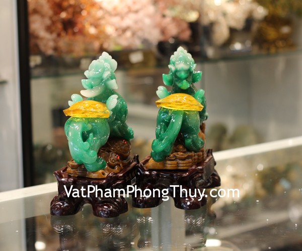 + Chất liệu và hoàn thiện: Cặp Tỳ Hưu xanh ngọc trên gậy như ý, bột đá màu cao cấp (tại Việt Nam).