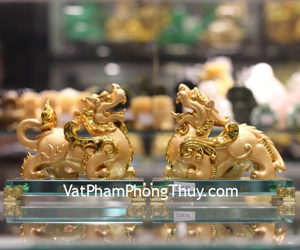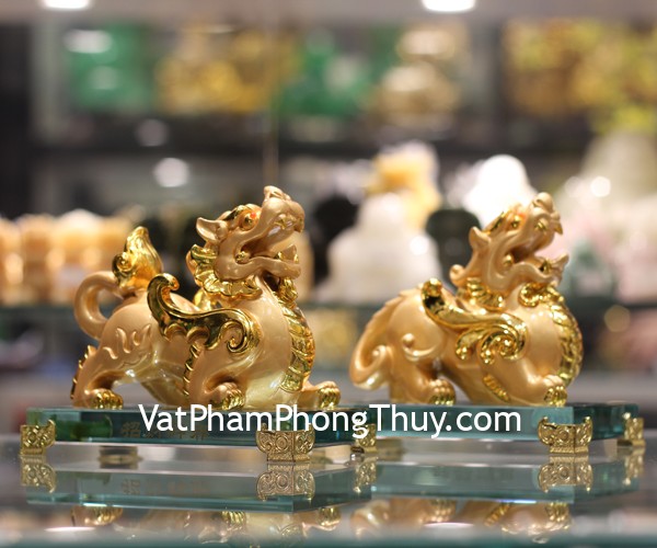 + Chất liệu và hoàn thiện: Cặp Tỳ Hưu vàng trên đế thủy tinh, bột đá mạ vàng cao cấp (tại Việt Nam).