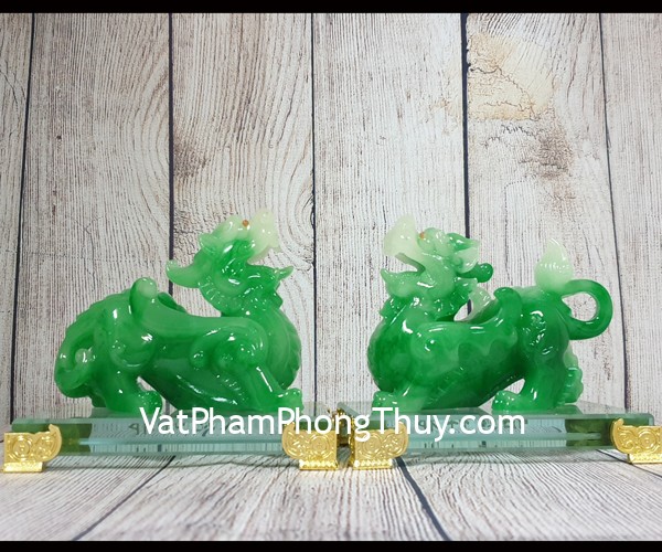+ Chất liệu và hoàn thiện: Cặp tỳ hưu xanh ngọc hút lộc trên đế thuỷ tinh nhỏ, bột đá màu cao cấp (tại Việt Nam).