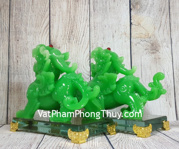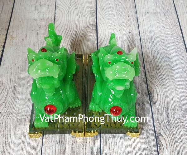 + Chất liệu và hoàn thiện: Cặp tỳ hưu xanh ngọc ngực hồng châu trên đế thuỷ tinh, bột đá màu cao cấp (tại Việt Nam).