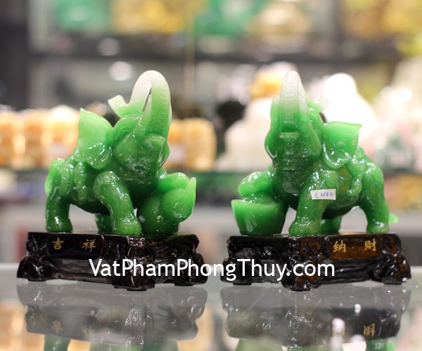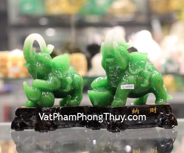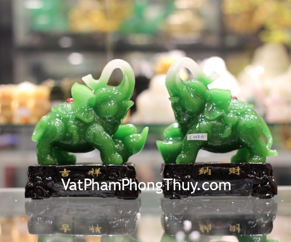 + Chất liệu và hoàn thiện: Cặp voi ngọc xanh bên hồ lô, nén vàng, bột đá màu cao cấp (tại Việt Nam).