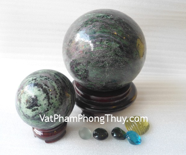 + Chất liệu và hoàn thiện: Qủa cầu đá hồng lục bảo, vỏ ruby (tại Việt Nam).