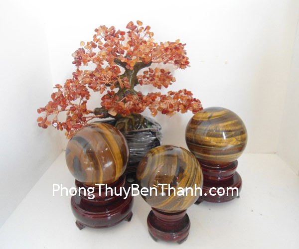 + Chất liệu và hoàn thiện: Qủa cầu phong thủy đá mắt mèo vân gỗ (tại Việt Nam).