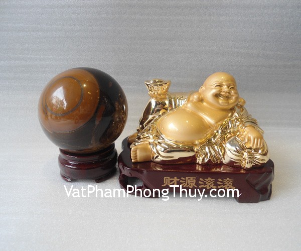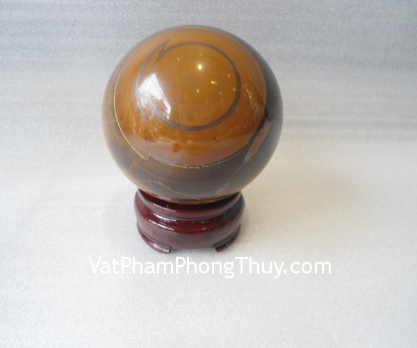 + Chất liệu và hoàn thiện: Quả cầu phong thủy đá mắt mèo vân gỗ (tại Việt Nam).
