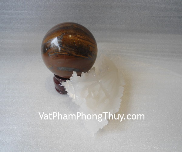 + Chất liệu và hoàn thiện: Quả cầu phong thủy đá mắt mèo vân gỗ (tại Việt Nam).