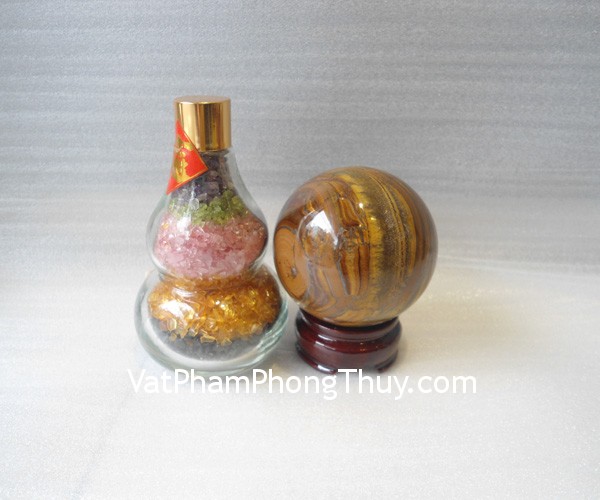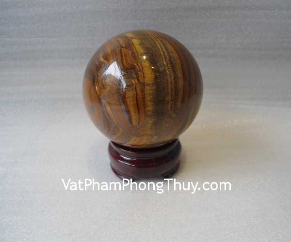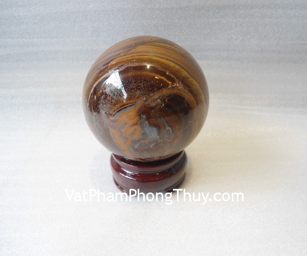 + Chất liệu và hoàn thiện: Quả cầu phong thủy đá mắt mèo vân gỗ (tại Việt Nam).