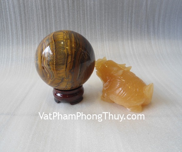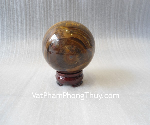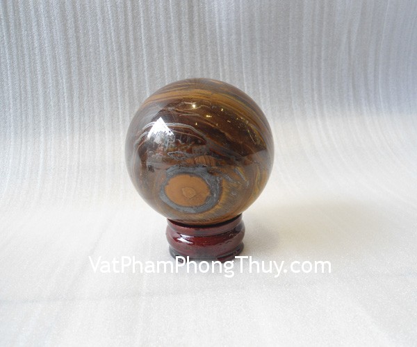 + Chất liệu và hoàn thiện: Quả cầu phong thủy đá mắt mèo vân gỗ (tại Việt Nam).