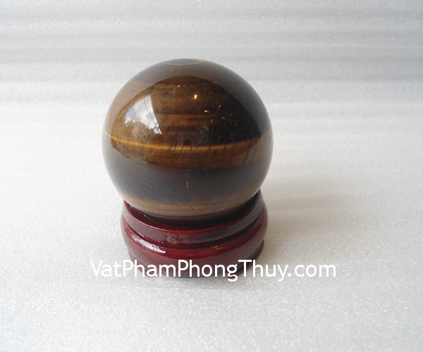 + Chất liệu và hoàn thiện: Quả cầu phong thủy đá mắt mèo vân gỗ (tại Việt Nam).