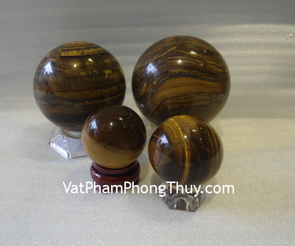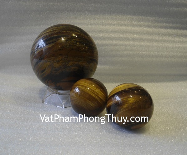 + Chất liệu và hoàn thiện: Quả cầu phong thủy đá mắt mèo vân gỗ (tại Việt Nam).