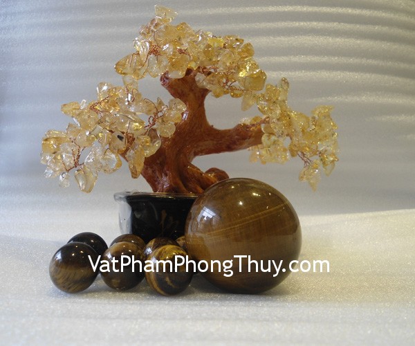 + Chất liệu và hoàn thiện: Quả cầu phong thủy đá mắt mèo vân gỗ (tại Việt Nam).